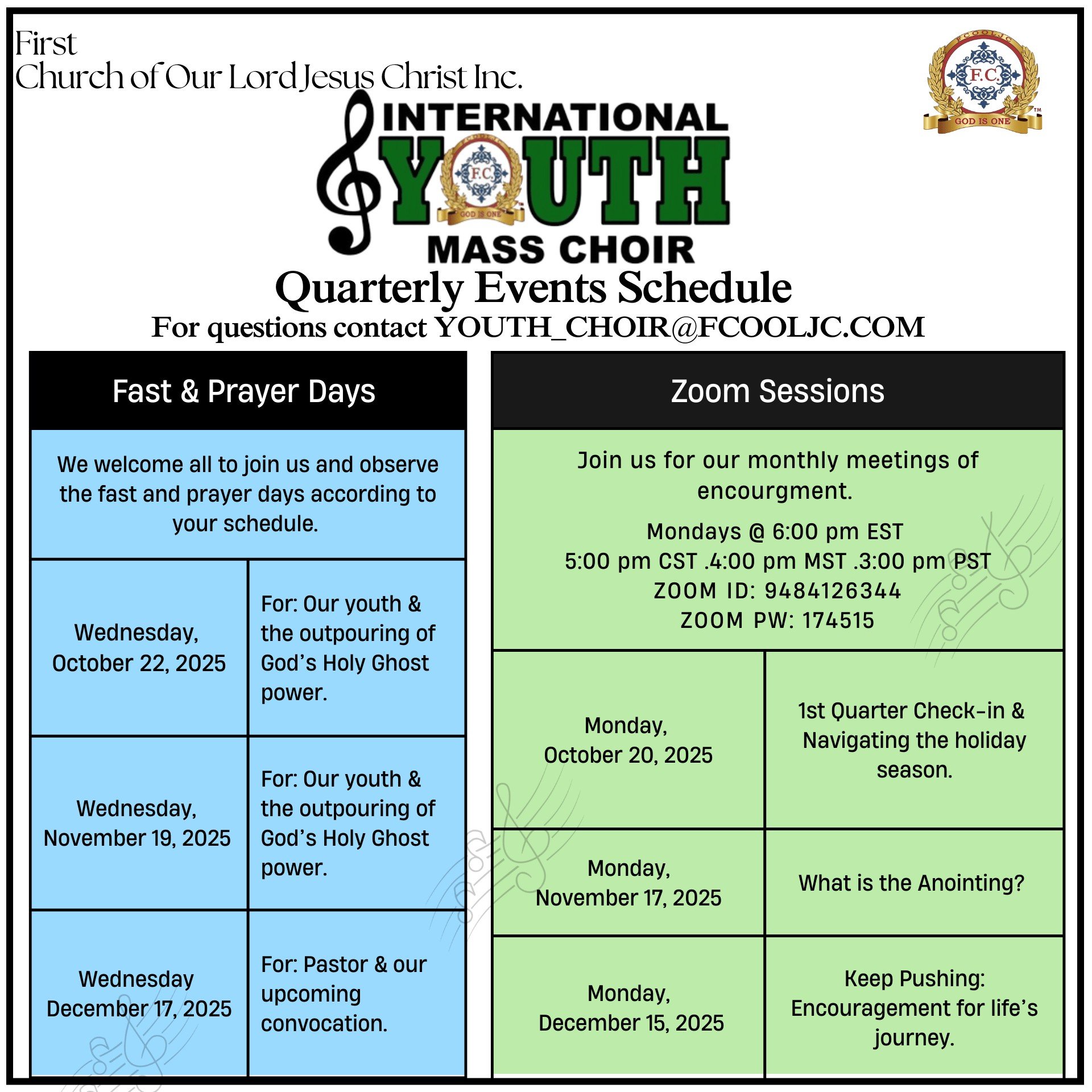 Please visit this page to see all the events which will be occurring throughout the month. The International Youth Captains and Youth Mass Choir Directors look forward to your participation!